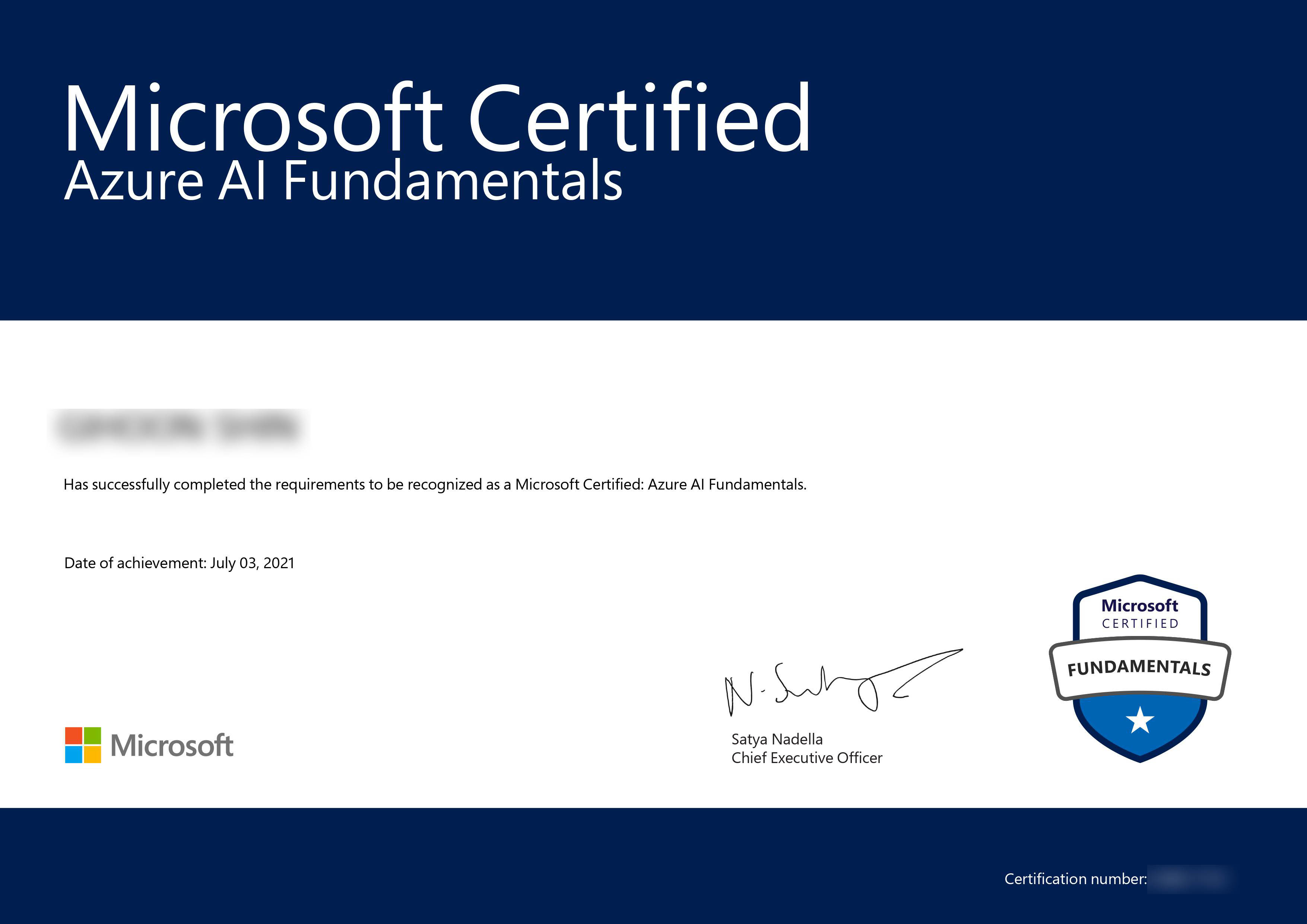 MS Azure 관련 자격증 중 AI 관련 기본 자격증인 AI-900 시험에 합격했습니다.