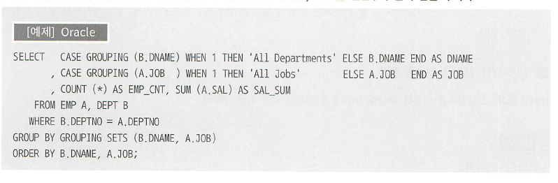 - GROUPING SETS 함수를 이용해 GROUP BY를 여러번 반복하지 않고도 원하는 결과 획득 가능