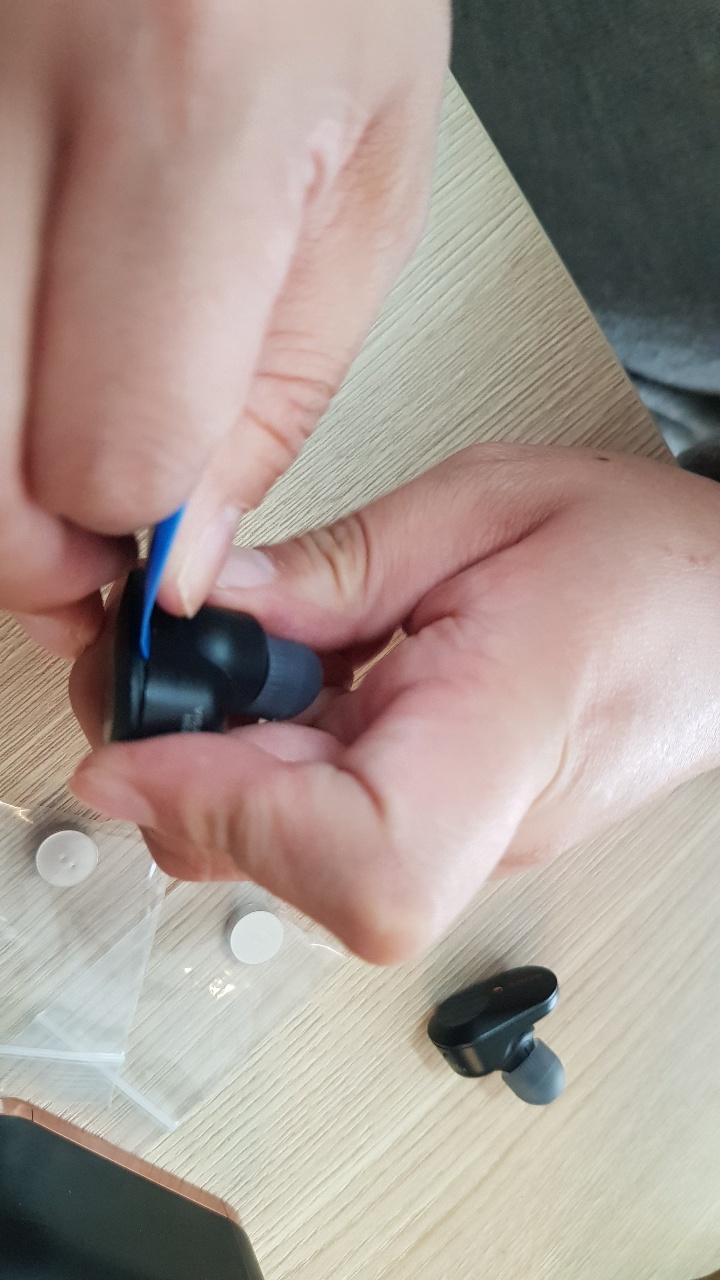 - 오프닝 픽으로 이어폰 뚜껑을 따봅시다. 측면에서부터 살살 열어가면서 돌리다 보면 따입니다. 깊숙히 넣지 않고 주변부를 딴다는 생각으로 진행해주세요. 깊숙히 넣으면 내부가 손상됩니다.